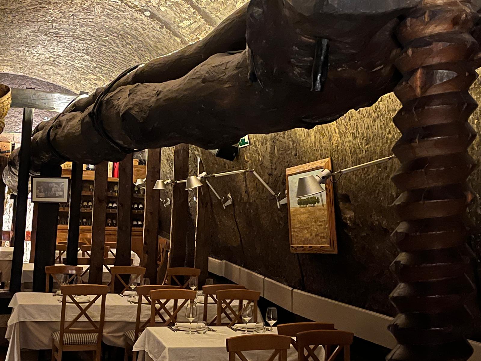 Bodega tradicional castellana — espacios abovedados y cocina de brasas.
